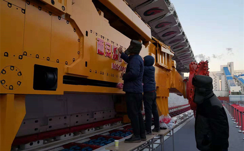液壓支架安裝到位,運輸機安裝到位,采煤機安裝到位,萬事俱備,只等12月6日金雞灘煤礦7米超大采高綜放工作面地面聯合調試現場會的召開。在進一步確認設備狀況時,現場服務小組提出了一個嚴峻的問題:在近零下二十度的低溫下,液壓油非常粘稠,調高泵吸不上液壓油,無法實現采煤機的調高和行走。這是一個大問題,急需盡快解決。采煤機是7米超大采高綜放工作面的核心設備,如果無法運轉,這將使聯合調試現場會黯然失色。現場服務小組集思廣益、群策群力,和礦方一道分析問題,最終提出一個解決方案:采煤機在聯合調試現場會召開前,由現場服務小組每隔一小時開一次采煤機,運轉十五分鐘,確保液壓油不粘稠,搖臂能夠升降,牽引能夠行走。12月5日的夜色深沉,調試現場燈光搖曳,西風烈烈,像錐子一樣刺穿衣物,凍得腦瓜仁兒發疼。現場服務小組不畏嚴寒,抵擋濃濃的困意,按照商定的方案有條不紊的進行。凌晨氣溫下降的快,開機時間間隔變為四十分鐘。曙光微現、旭日東升,難熬的一夜終于過去了,現場的彩旗也飄揚起來,正像現場服務人員的心情。