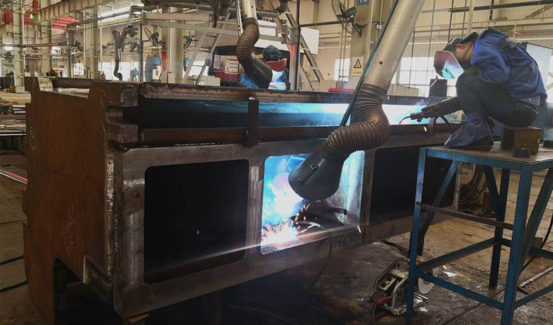 經過前期精心細致的準備工作,5月26日,為神東煤炭集團量身定制的8.8米超大采高采煤機箱體終于開始在金結分公司進入焊接階段。