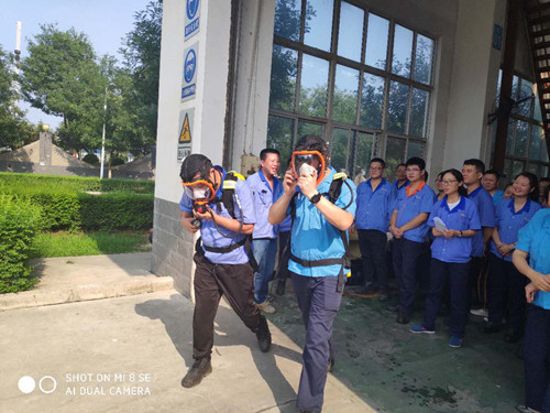 此次演練分兩個部分舉行,第一部分為桌面演練,桌面演練模擬大氮氣罐有一處閥門漏氣,熱加工分公司全體參加培訓、演練人員在熱加工分公司會議室由安全員集中培訓,宣布要求,做好演練準備,然后進行緊急防護裝置演練、熟悉逃生路線、氮氣泄露應急預案簡單描述、正壓式呼吸器的正確使用方法,最后由朱經理發布應急結束指令。第二部分為實戰功能演練階段,全體人員在氨氣站門口集中培訓,宣布要求,做好演練準備,先進行正壓式呼吸器,洗眼器的使用演練,然后模擬氨氣站法蘭螺栓松動發生泄露應急演練。全體人員通過此次實戰演練,學習了應急處理辦法,經歷了別開生面的體驗。(田林)