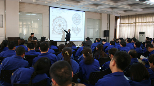 講座以“突破思維定勢,追求自主原創”為主題,圍繞著“振動截割式掘進機”、“切楔振動覆帶式采煤機”、“星齒行星減速器等技術”三個前沿性課題就采煤機、掘進機設計、生產制造中容易出現的問題、難點以及解決思路和具體措施等詳細的講解。通過學習培訓使大家深刻的認識到只有突破思維定勢,才能超越,才能不斷創新。