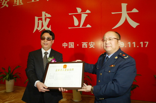 西安市工商行政管理局經開區分局局長趙峰為西安重工裝備制造集團有限公司頒發營業執照