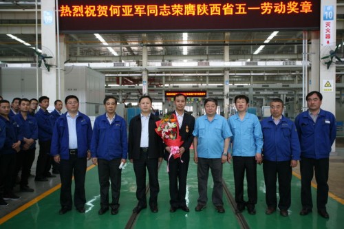 近日,陜西省總工會下發了《關于召開2016年陜西省慶祝五一國際勞動節暨表彰大會的通知》,公司員工何亞軍光榮獲得“2016年陜西省五一勞動獎章獲得者”榮譽稱號。