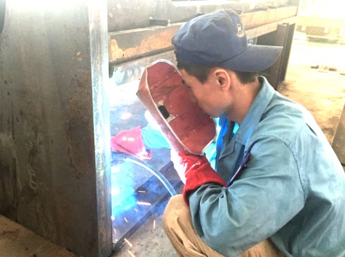 今年六月份,分公司受命接到出口越南采煤機(jī)210101E-220101E牽引部(左右各一件)生產(chǎn)焊接任務(wù),由于此次加工的牽引部是分公司鑄改焊之后的首次高端新產(chǎn)品,從工藝要求到產(chǎn)品制作加工,完全是一次全新的嘗試。牽引部所使用的材質(zhì)是460材料,不同以往常規(guī)的230或16Mn材料,材質(zhì)強(qiáng)度高,所要求的焊接水平也非常高,工藝復(fù)雜,質(zhì)量要求嚴(yán)格,再加之牽引部的坡口深,焊接量特別大,時(shí)間緊、工期短、任務(wù)急。對(duì)此,分公司領(lǐng)導(dǎo)高度重視,依然將此項(xiàng)任務(wù)交給了楊偉班組。面對(duì)新的挑戰(zhàn),楊偉和他班組沒(méi)有退縮,而是選擇了迎難而上。他仔細(xì)研究圖紙,及時(shí)與工藝技術(shù)人員溝通,吃透工藝要點(diǎn),熟知質(zhì)量要求,反復(fù)琢磨各部位支撐、連接關(guān)系,包括結(jié)構(gòu)件在翻轉(zhuǎn)過(guò)程中避免吊具對(duì)箱體表面造成劃痕,他都做了認(rèn)真細(xì)致的研究。在充分吃透各種技術(shù)要求和認(rèn)真研究的基礎(chǔ)上,他結(jié)合自身多年的實(shí)踐經(jīng)驗(yàn),自制工裝,采用最實(shí)用的操作技法,邊集配邊焊接,保證了焊接件加工質(zhì)量和圖紙技術(shù)尺寸要求。時(shí)值六月的西安,接連的持續(xù)高溫,楊偉同志身先士卒,發(fā)揮模范帶頭作用,顧不上擦去臉上一道道的汗痕,帶領(lǐng)班組成員戰(zhàn)高溫、斗酷暑,每天一干就是10多個(gè)小時(shí),身體經(jīng)受著高溫和弧光火焰的雙重“烤驗(yàn)”,衣服常常被汗水浸得濕漉漉的。但對(duì)于楊偉和他的班組來(lái)說(shuō),再熱再苦再累,都不怕,咬咬牙,堅(jiān)持堅(jiān)持就挺過(guò)去了,重要的是通過(guò)大家的努力,按時(shí)保質(zhì)保量完成加工任務(wù),這才是關(guān)鍵。身為班組長(zhǎng),他身先士卒、勇挑重?fù)?dān),作為一名共產(chǎn)黨員,他時(shí)時(shí)搶在先,干在前,樹(shù)立共產(chǎn)黨員先進(jìn)標(biāo)桿形象,對(duì)于自己的所作所為,他時(shí)常說(shuō)“我是一名共產(chǎn)黨員,就必須要帶好頭,樹(shù)好先進(jìn)形象。”