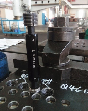 防爆螺紋的質量好壞直接影響著采煤機整機性能和質量,長期以來,防爆螺紋加工質量不穩定、合格品交驗率低,制約著公司產品質量的提升。為此,西安煤機公司工藝研究所組織工藝技術人員和一線操作者,以公司開展的產品質量提升工程為契機,大膽采用擠壓螺紋替代鉆攻螺紋方式,通過在普通搖臂鉆床上試塊預鉆螺紋底孔若干個,采用機床和人工擠壓絲錐完成螺紋加工。經檢驗,試驗材料螺孔均合格。